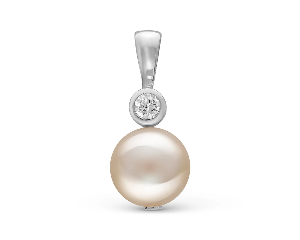 Кулон из серебра с белой круглой речной жемчужиной 9-10 мм, (2980)