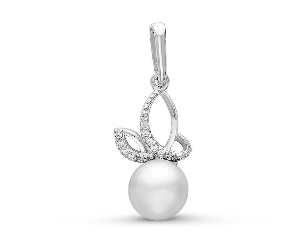 Подвеска выполнена из серебра 925 пробы, украшена фианитами и белой пресноводной жемчужиной. Высота кулона - 2,9 см.
