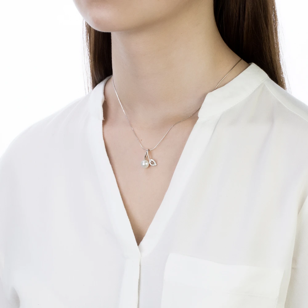 Кулон из серебра с белой речной жемчужиной 7,5-8 мм, (4003)
