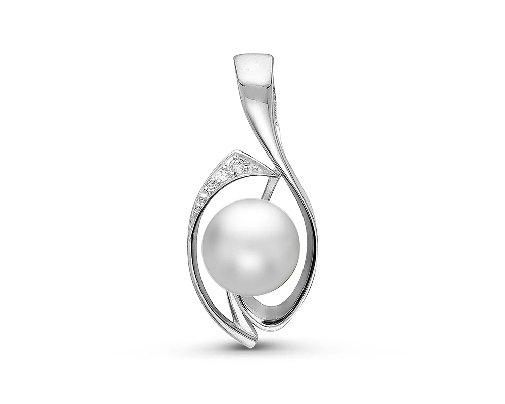 Кулон из серебра с белой речной жемчужиной 8,5-9 мм, (3475)