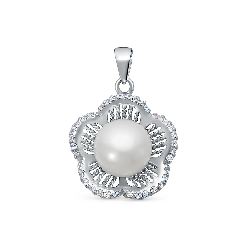 Подвеска выполнена из серебра 925 пробы, украшена фианитами и белой пресноводной жемчужиной.