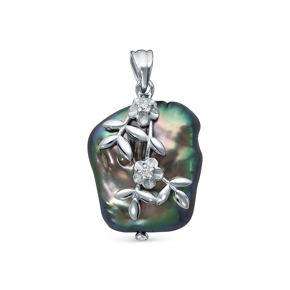 Подвеска выполнена из серебра 925 пробы, украшена фианитами и черной барочной пресноводной жемчужиной. Жемчужина может отличаться формой от жемчужины, изображенной на фото, так как каждая барочная жемчужина уникальна.