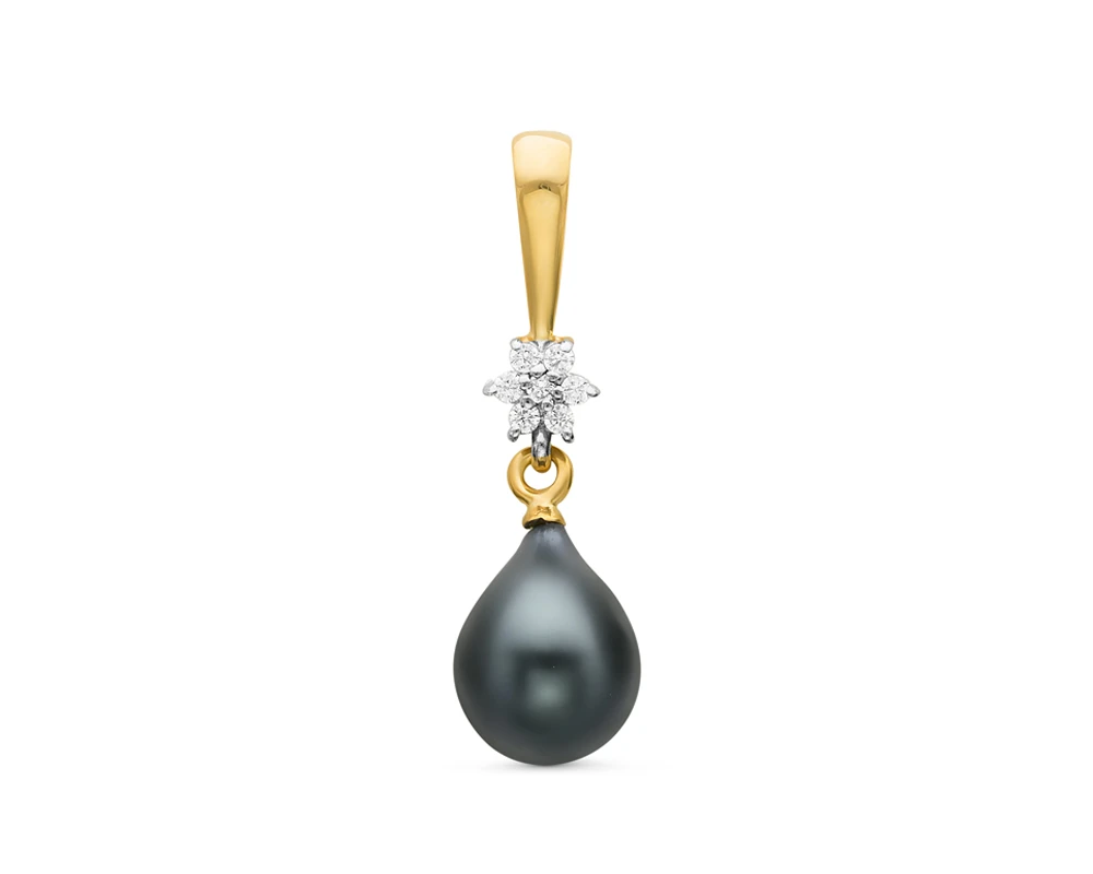 Кулон из серебра с черной каплевидной речной жемчужиной 7,5-8 мм, (3313)
