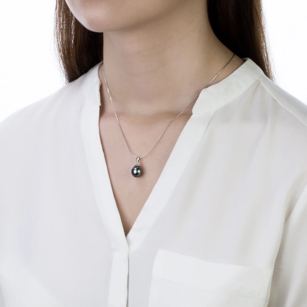 Кулон из серебра с черной морской Таитянской жемчужиной 9,6-9,9 мм, (3310)
