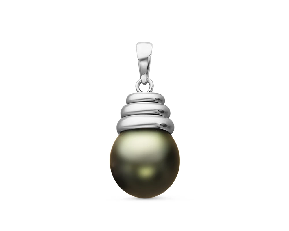 Кулон из серебра с черной морской Таитянской жемчужиной 10-10,5 мм, (3311)