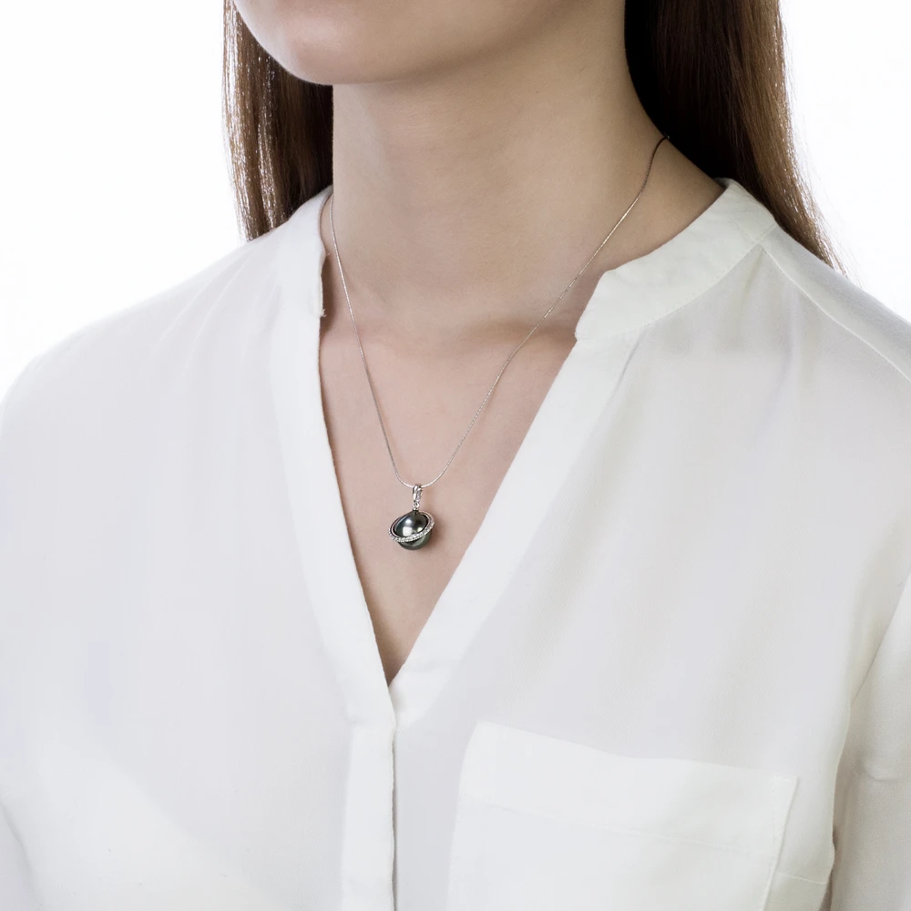 Подвеска выполнена из серебра 925 пробы, украшена каплевидной морской жемчужиной. Качество жемчужины — очень высокое, жемчужина обладает ярким блеском и неповторимым цветом морского Таитянского жемчуга. Высота кулона - 2,3 см.