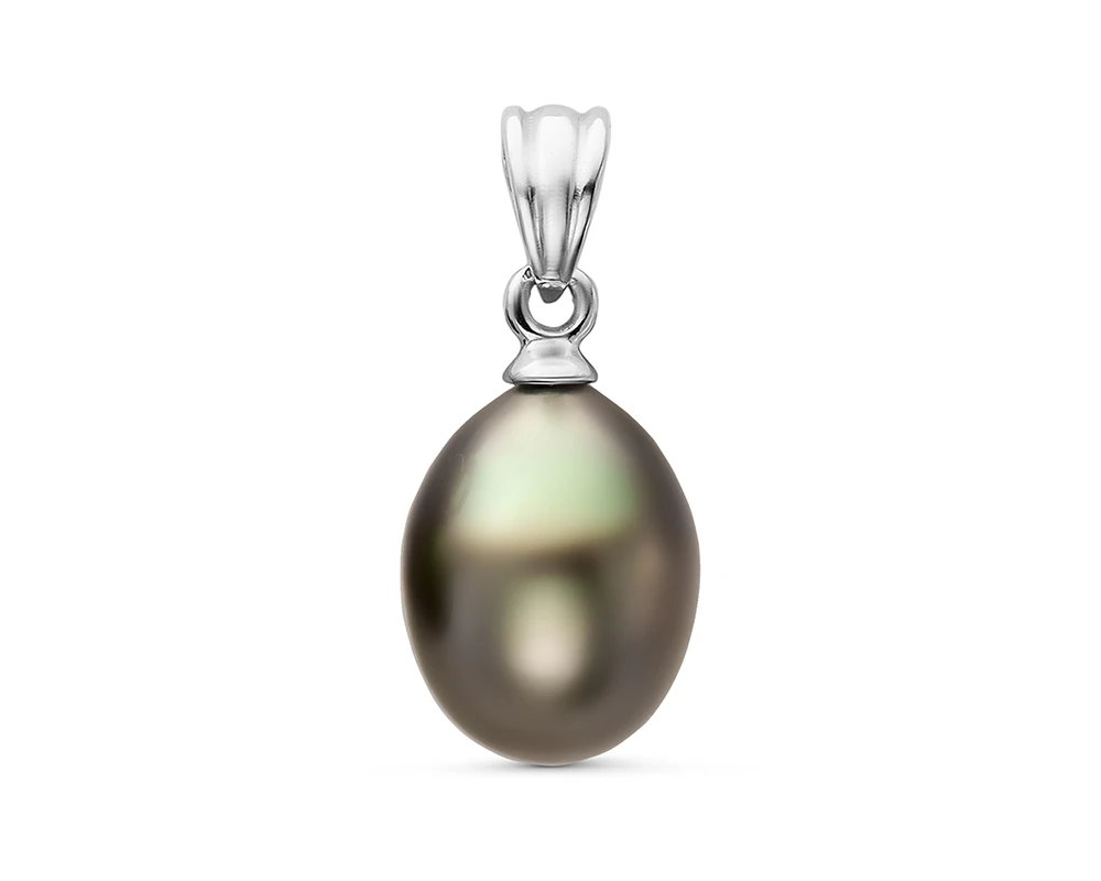 Подвеска выполнена из серебра 925 пробы, украшена черной морской жемчужиной. Качество жемчужины очень высокое, жемчужина имеет яркий блеск и неповторимый цвет морского Таитянского жемчуга.