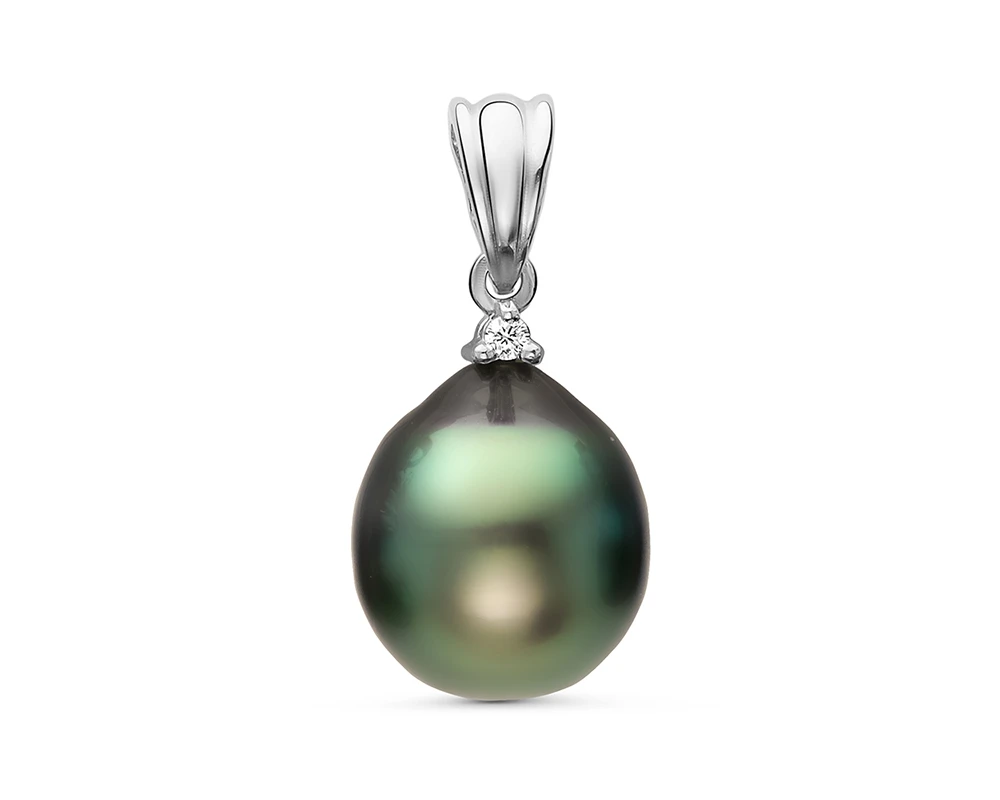 Подвеска выполнена из серебра 925 пробы, украшена черной морской жемчужиной. Качество жемчужины очень высокое, жемчужина имеет яркий блеск и неповторимый цвет морского Таитянского жемчуга. Высота кулона - 2,3 см.