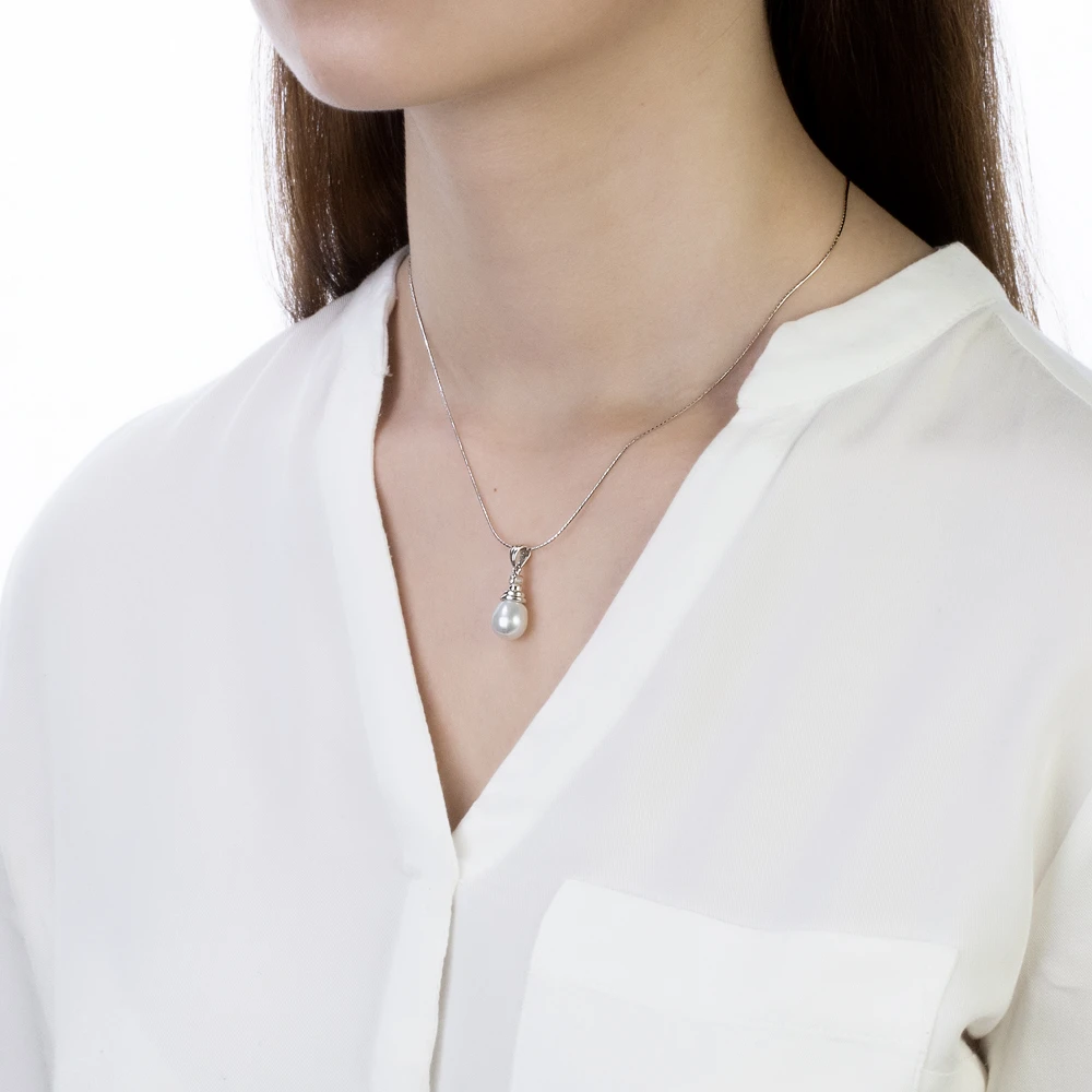Кулон из серебра с белой морской Австралийской жемчужиной 9-9,5 мм, (6238)