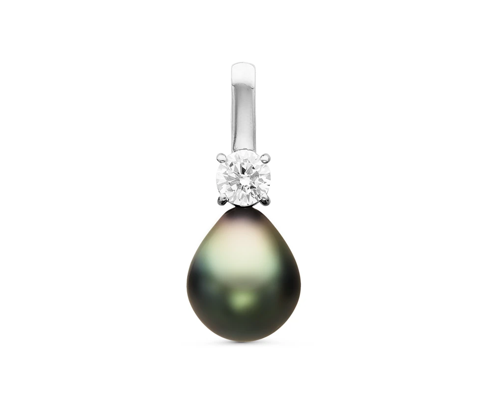 Кулон из серебра с черной морской Таитянской жемчужиной 10-10,5 мм, (3305)