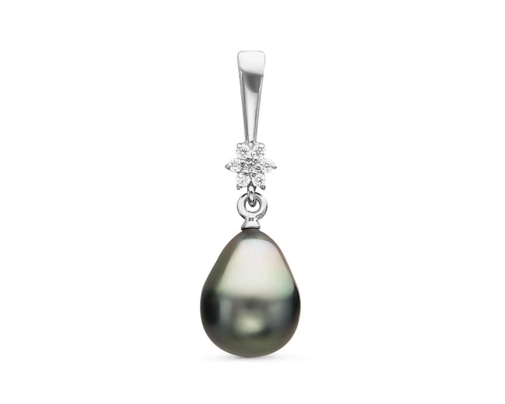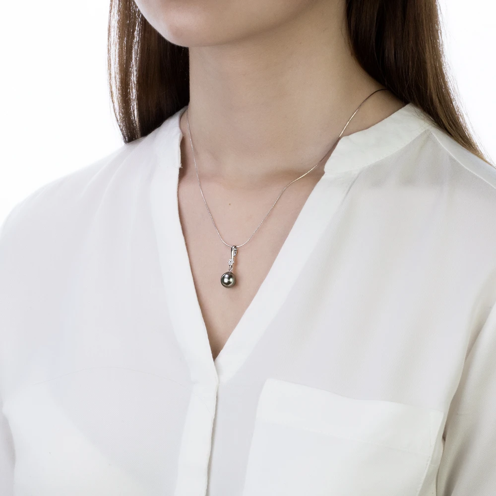 Кулон из серебра с черной морской Таитянской жемчужиной 9-9,5 мм, (3304)