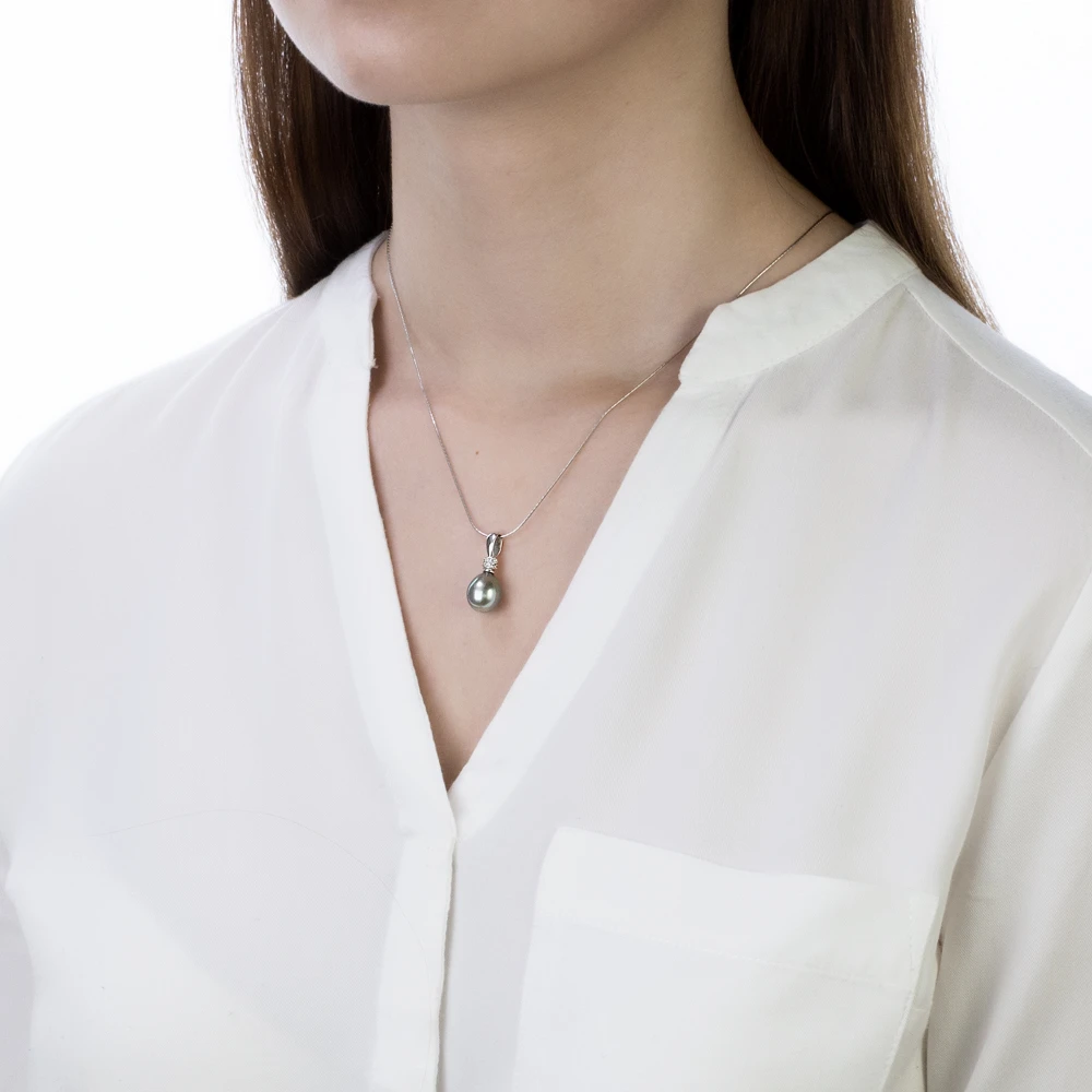 Кулон из серебра с серебристой морской Таитянской жемчужиной 10-10,5 мм, (3306)