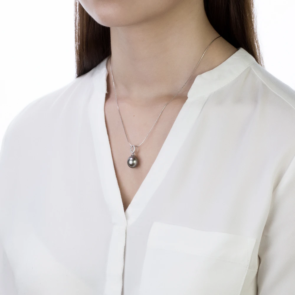 Кулон из серебра с черной морской Таитянской жемчужиной 11-11,5 мм, (3580)