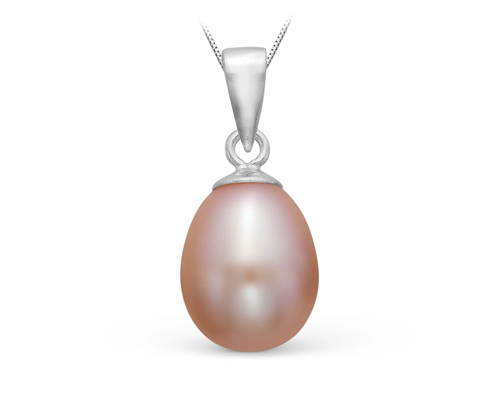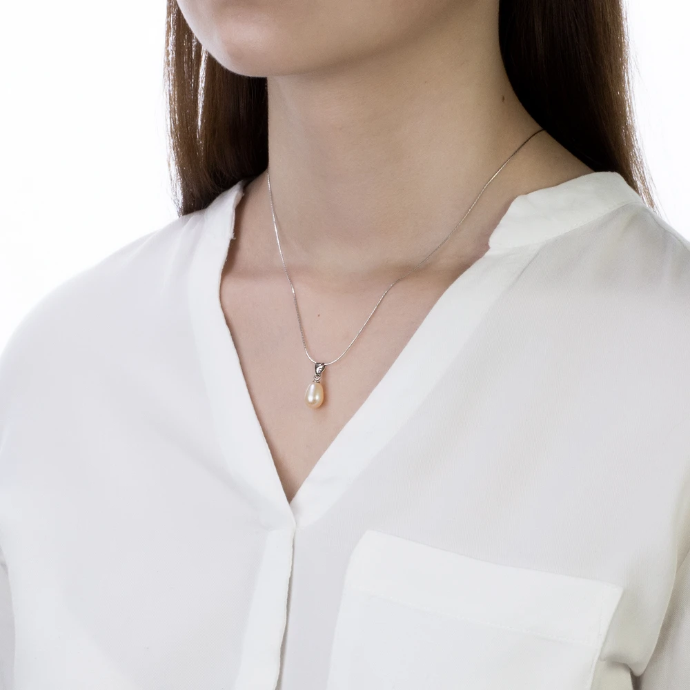 Кулон из серебра с розовой каплевидной жемчужиной 7,5-8,5 мм, (2332)