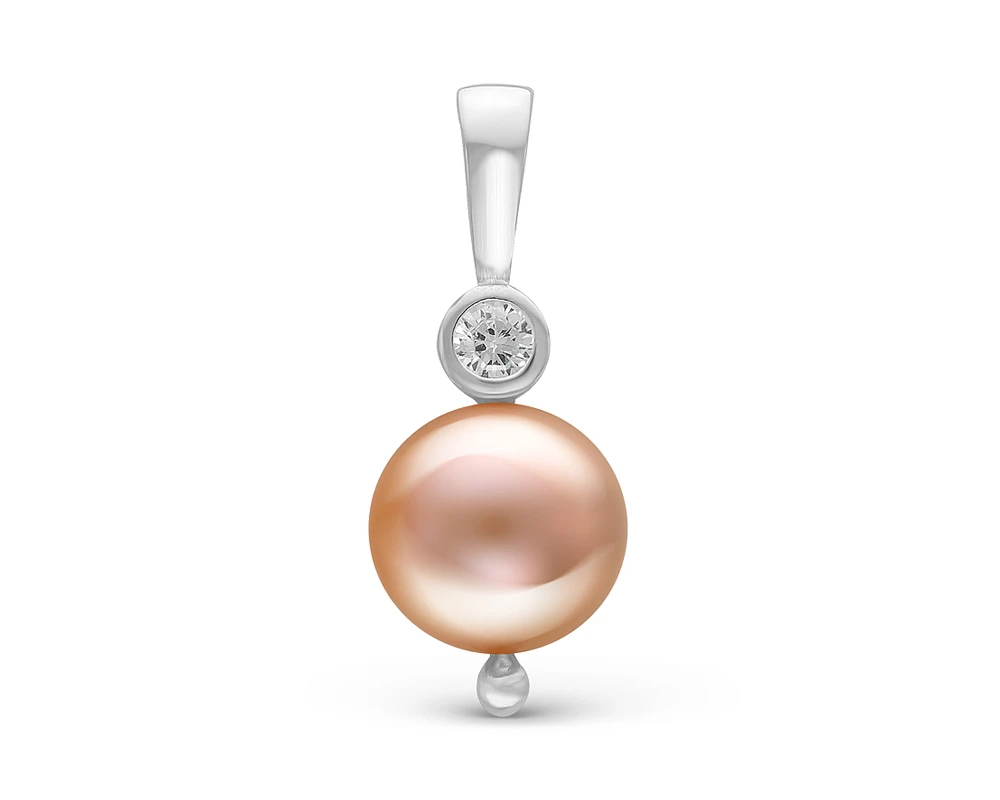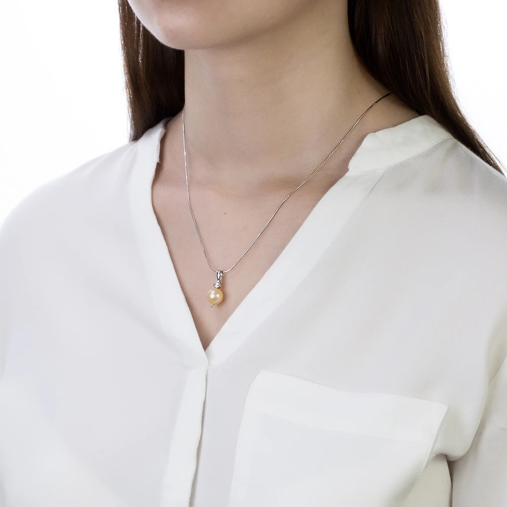 Кулон из серебра с розовой круглой речной жемчужиной 9-10 мм, (2983)