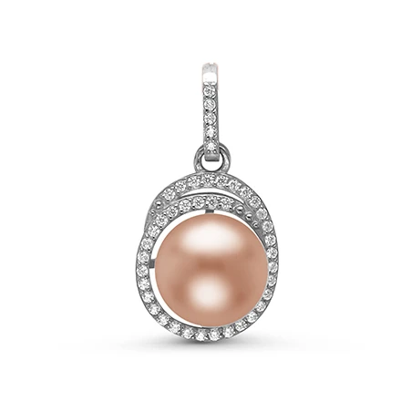 Кулон из серебра с розовой речной жемчужиной 10-10,5 мм, (7598)