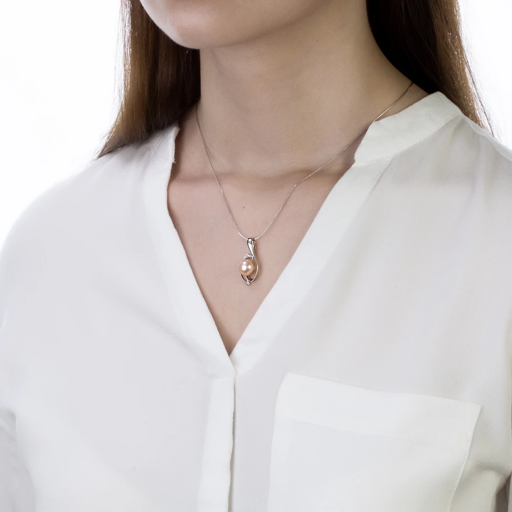 Кулон из серебра с розовой речной жемчужиной 8,5-9 мм, (3476)