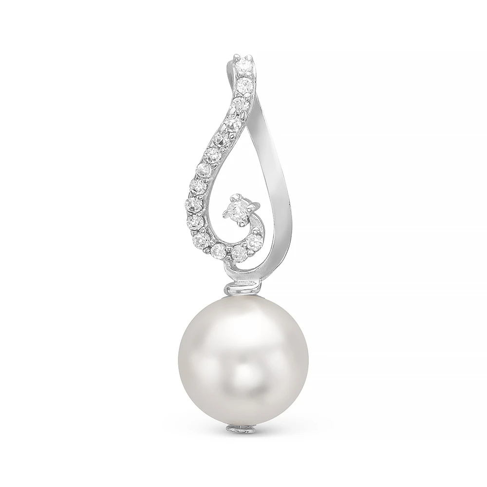 Кулон из серебра с белой речной жемчужиной 9,5-10 мм, (3803)