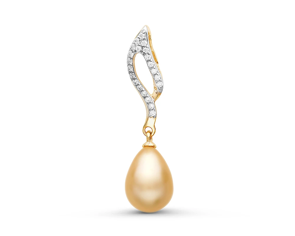 Кулон из серебра с золотистой каплевидной речной жемчужиной 8-8,5 мм, (3392)