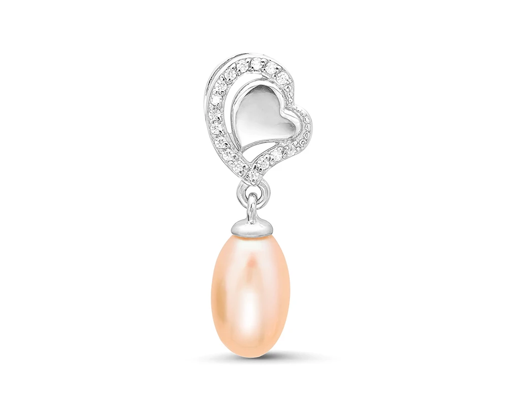 Кулон "Сердце" из серебра с розовой речной жемчужиной 7,5-8 мм, (4061)