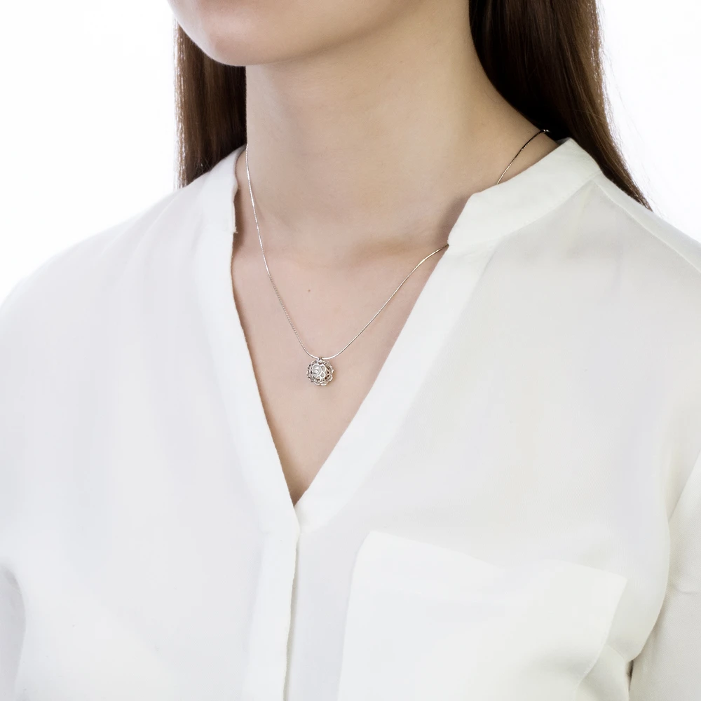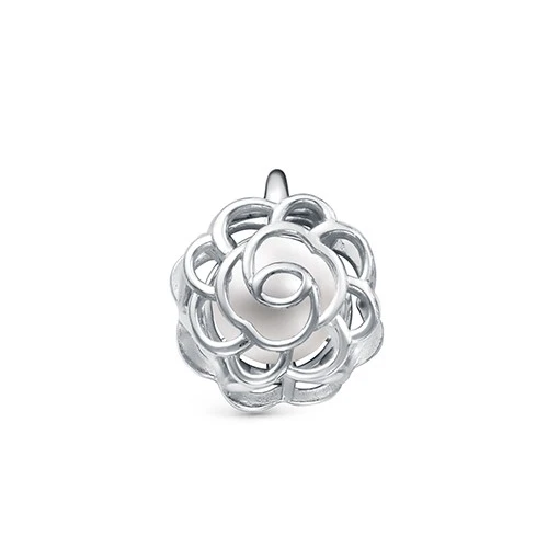 Кулон "Роза" из серебра с белой речной жемчужиной 6,5-7 мм, (4114)