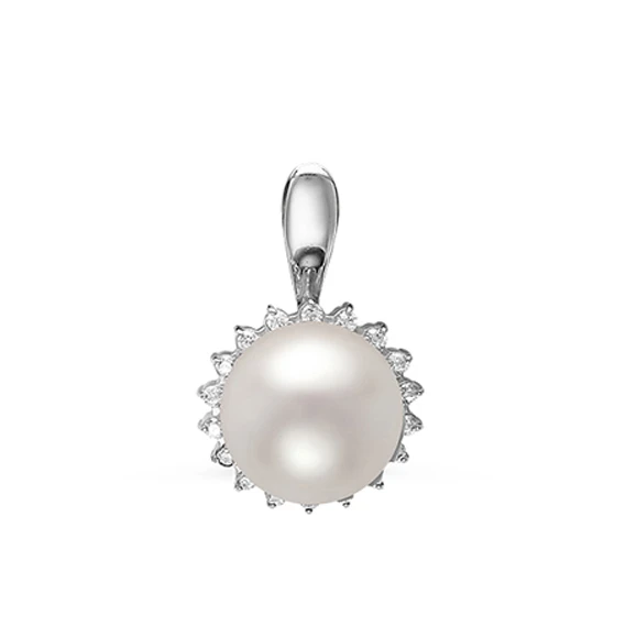 Кулон из серебра с белой речной жемчужиной 9,5-10 мм, (7603)