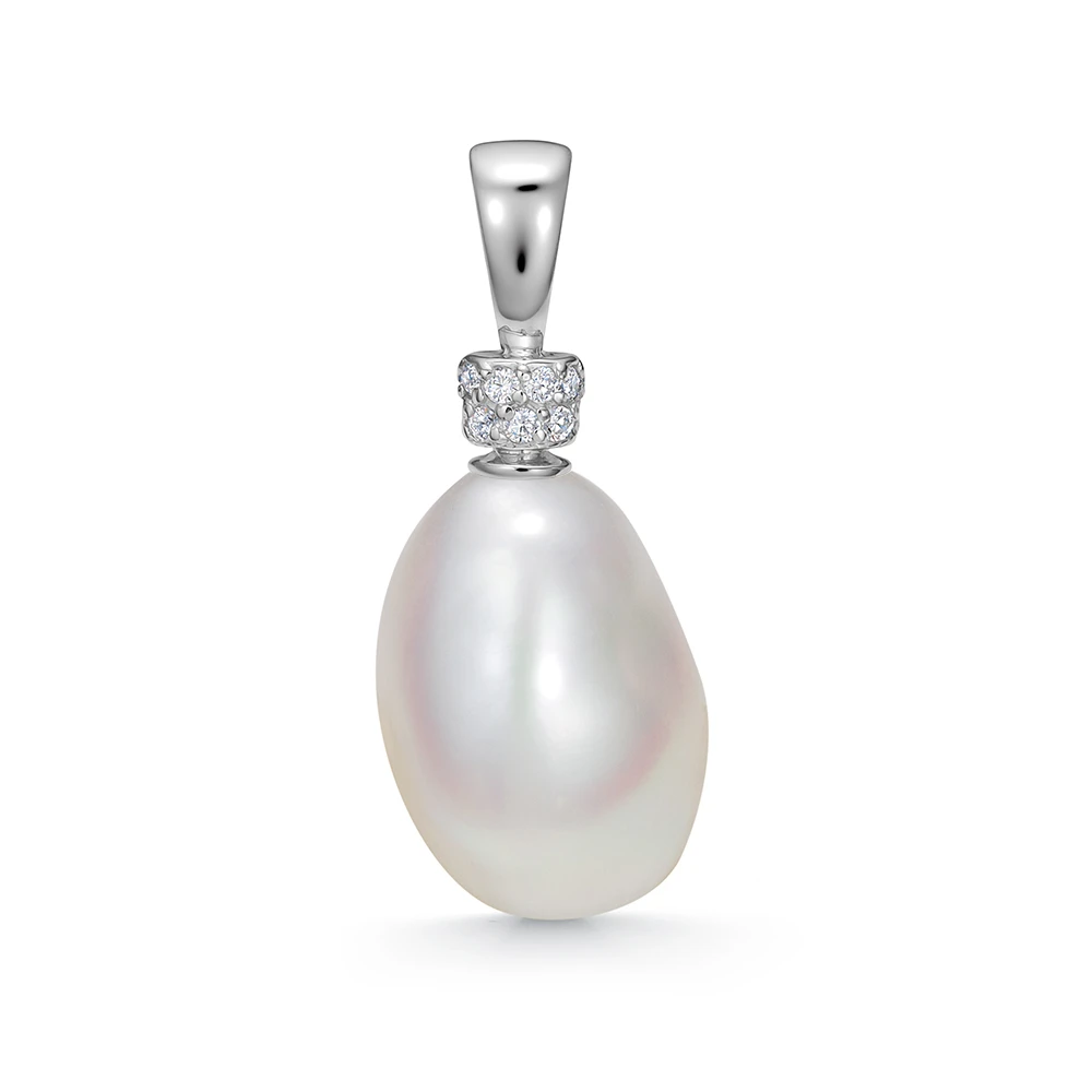 Кулон из серебра с белой барочной речной жемчужиной 10-11 мм, (7735)
