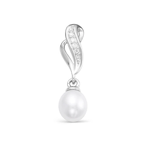 Кулон из белого золота с белой речной жемчужиной 9-10 мм, (7366)