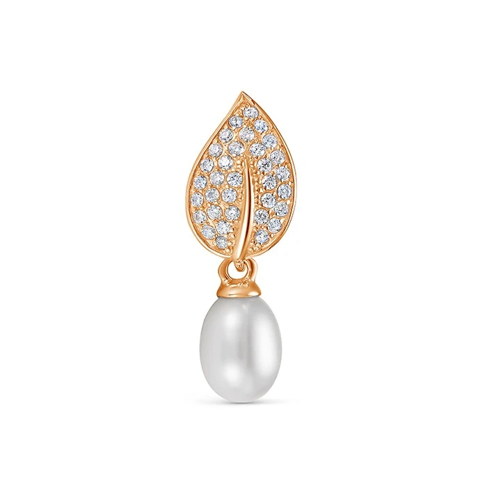 Подвеска из желтого золота 585 пробы украшена каплевидной белой жемчужиной пресной воды и фианитами. Качество жемчужины наивысшее: форма идеальная капля, блеск очень яркий, дефекты на поверхности отсутствуют.