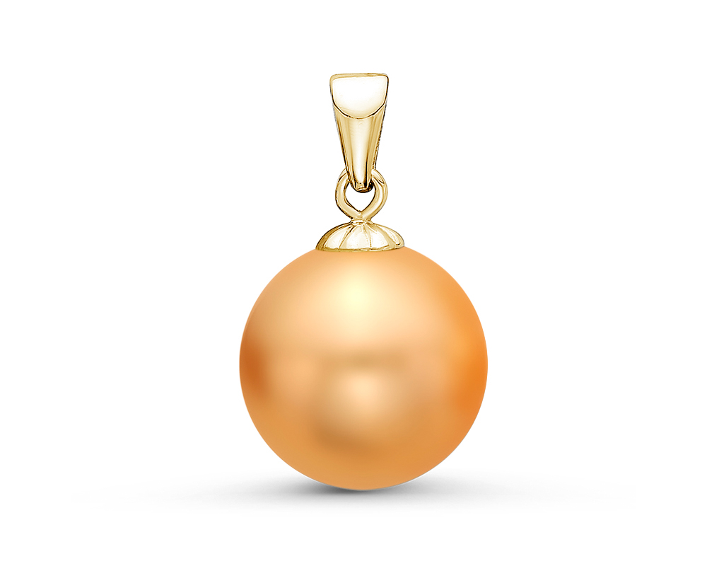 Подвеска из золота с золотистой Австралийской жемчужиной 13-13,5 мм, (2293)
