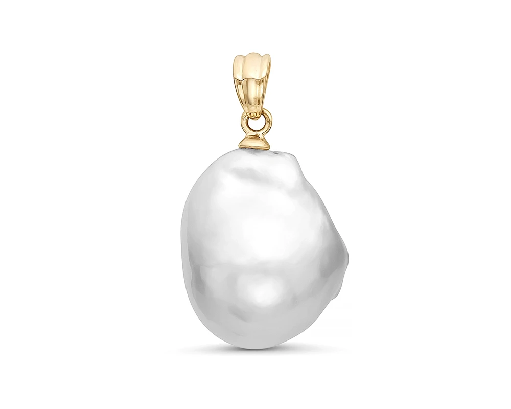 Подвеска из золота с белой барочной речной жемчужиной 13-16 мм, (3821)