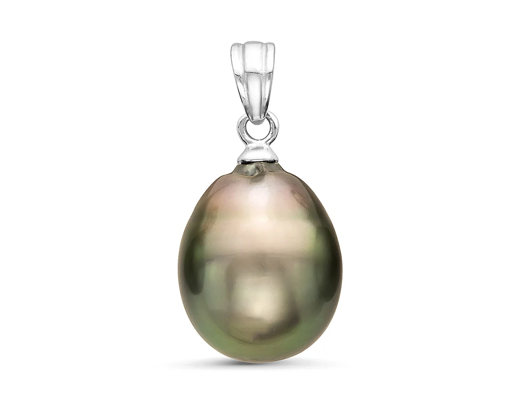 Подвеска выполнена из белого золота 585 пробы и украшена черной морской Таитянской жемчужиной идеальной каплевидной формы. Жемчужина имеет очень яркий блеск, гладкую поверхность. Высота кулона — 2,5 см.