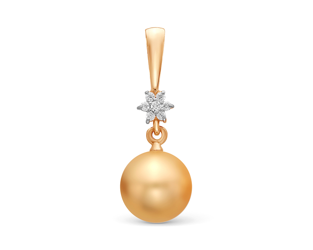 Подвеска из золота с пресноводной золотистой жемчужиной 8,5-9 мм, (6022)
