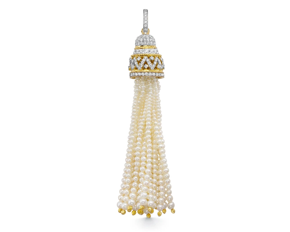 Эксклюзивная подвеска-кулон из золота с белыми пресноводными жемчужинами 2-3,5 мм, (3835)