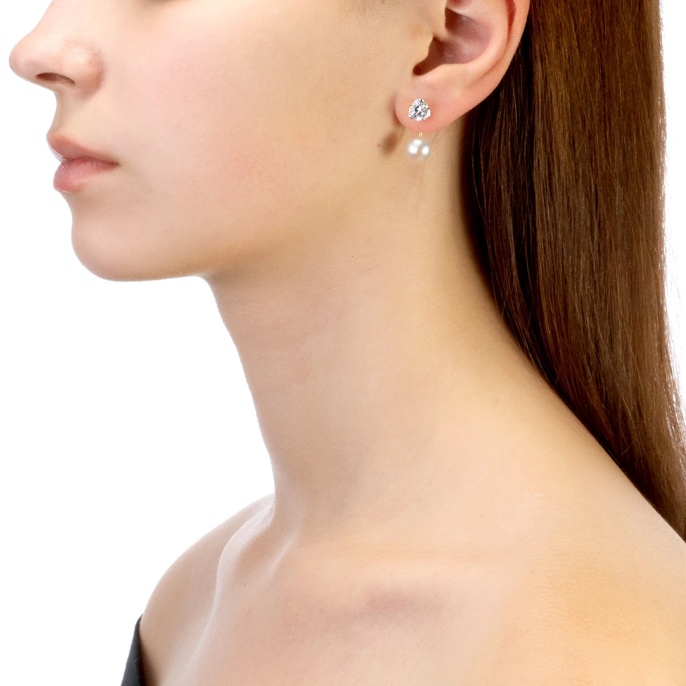 Двойные пусеты из серебра 925 пробы украшены белым пресноводным жемчугом. Форма жемчужин - "пуговица" (сплющенная), блеск перламутра очень яркий, качество жемчуга очень высокое.
