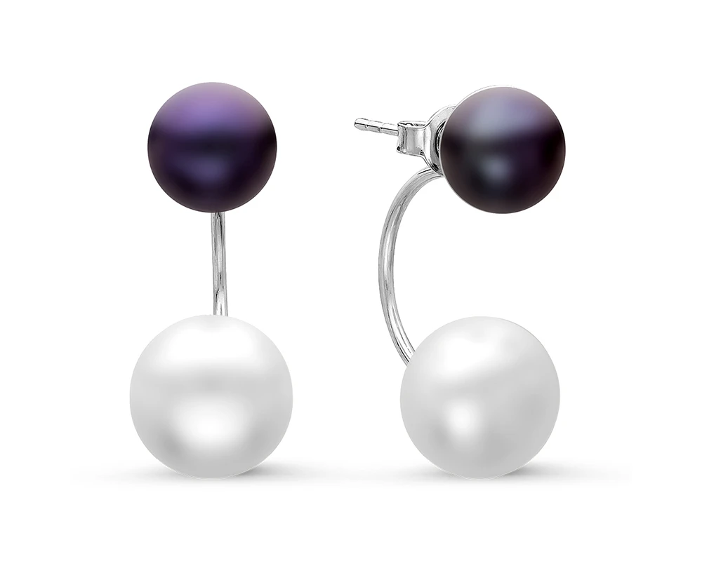 Пусеты "Диор" из серебра с белыми и черными речными жемчужинами 7,5-10 мм, (3370)