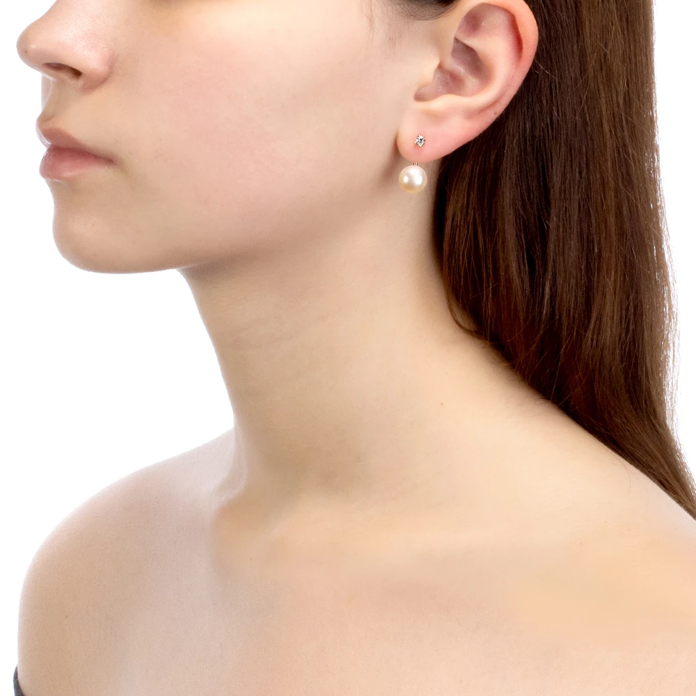 Пусеты "Диор" из серебра с белыми речными жемчужинами 9,5-10 мм, (3367)