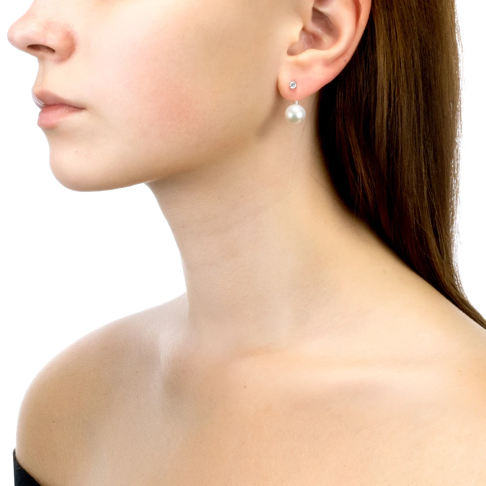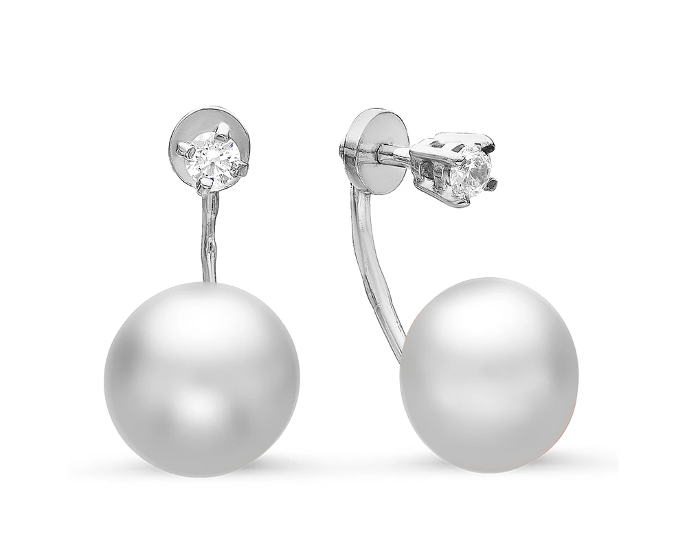 Пусеты "Диор" из серебра с белыми речными жемчужинами 9,5-10 мм, (3470)