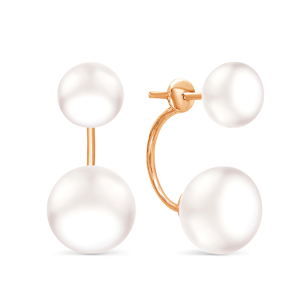 Двойные пуссеты из серебра 925 пробы с красным покрытием украшены белым пресноводным жемчугом. Тип замка - винт.