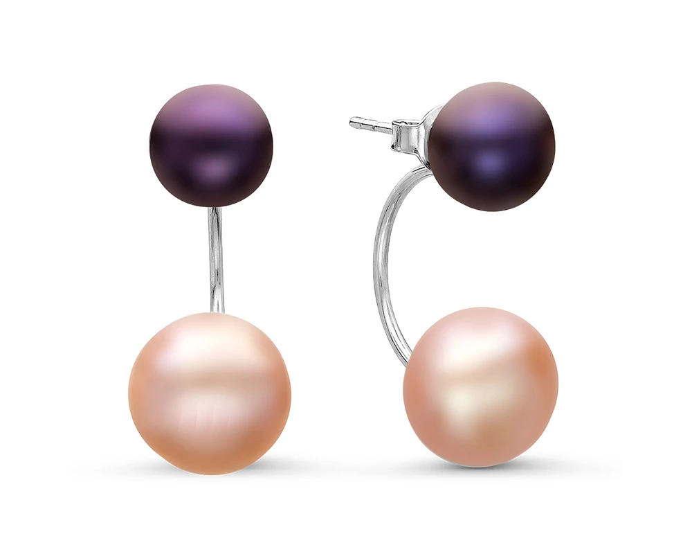 В наличии есть серьги с жемчужинами различных оттенков розового и черного цвета.