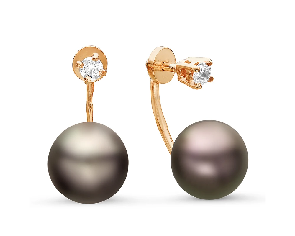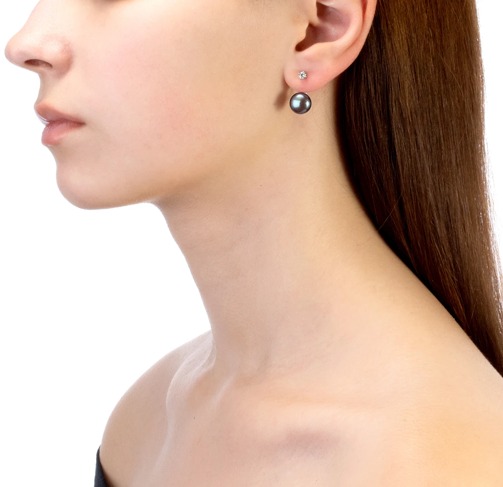 Пусеты "Диор" из серебра с черными речными жемчужинами 9,5-10 мм, (3371)