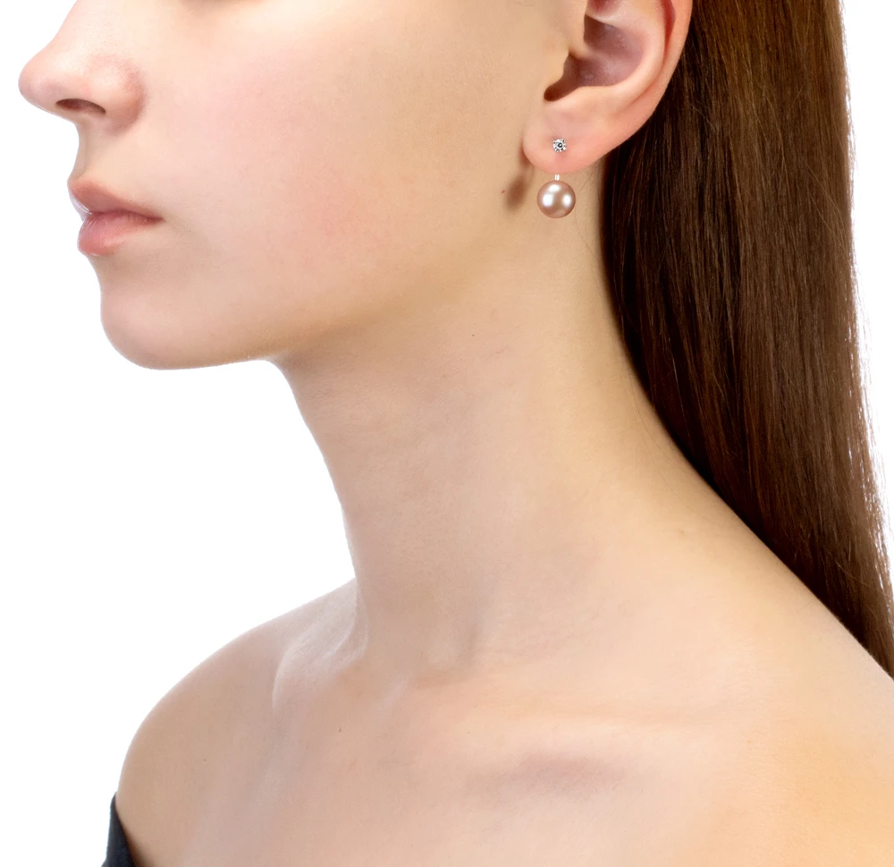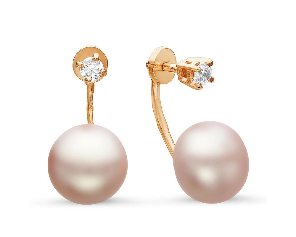Пусеты "Диор" из серебра с розовыми речными жемчужинами 9,5-10 мм, (3378)