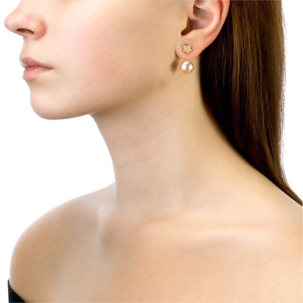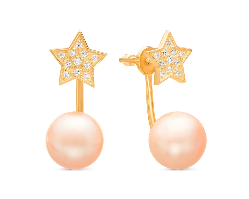 Двойные серьги из серебра 925 пробы украшены розовым пресноводным жемчугом. Форма жемчужин - "пуговица" (сплющенная), блеск перламутра очень яркий, качество жемчуга очень высокое. В наличии есть серьги с жемчужинами различных оттенков розового цвета.