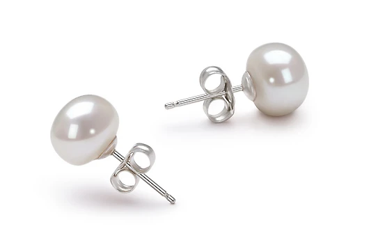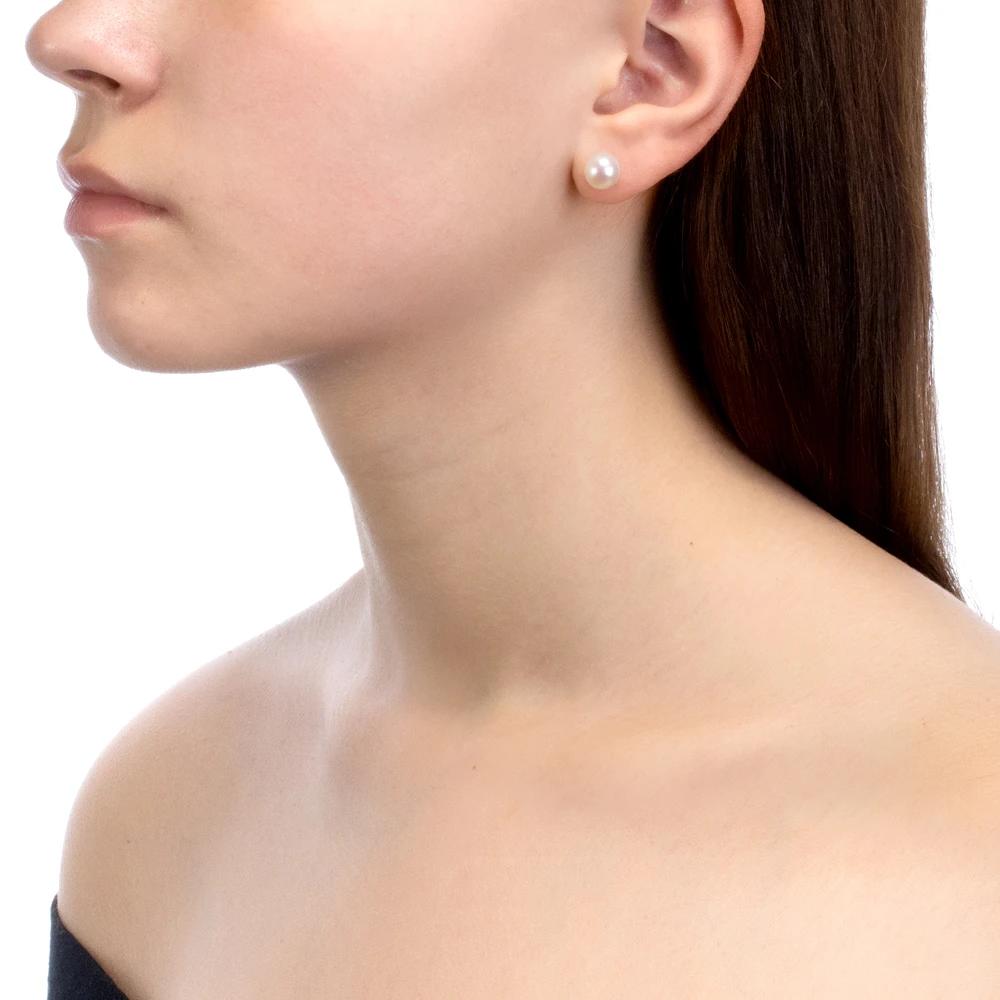 Пусеты из серебра 925 пробы украшены белыми пресноводными жемчужинами.
