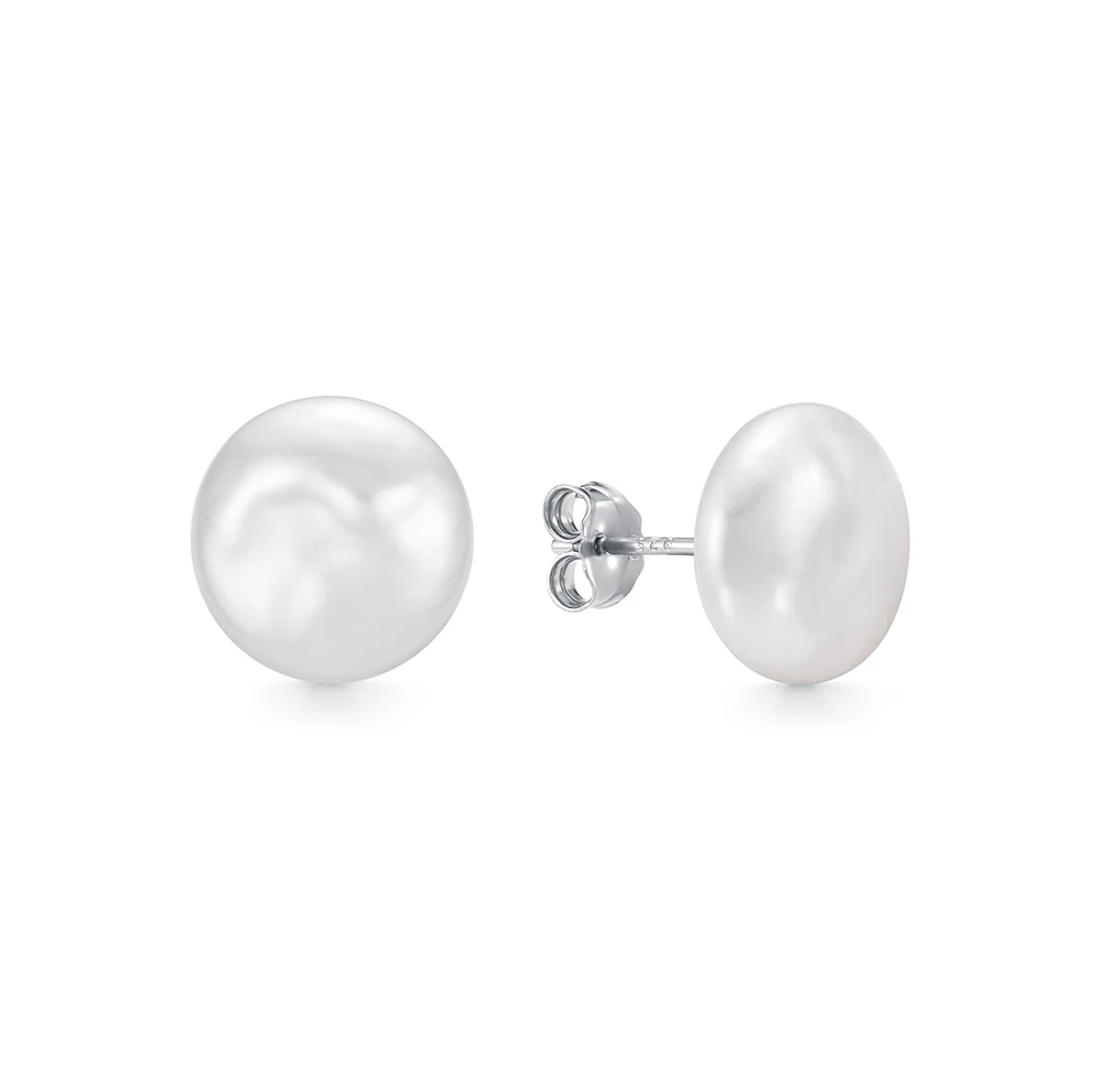 Пусеты изготовлены из серебра 925 пробы и украшены белыми речными жемчужинами неправильной формы "Барокко". Качество жемчужин на серьгах наивысшее, жемчужины имеют очень яркий перламутровый блеск.