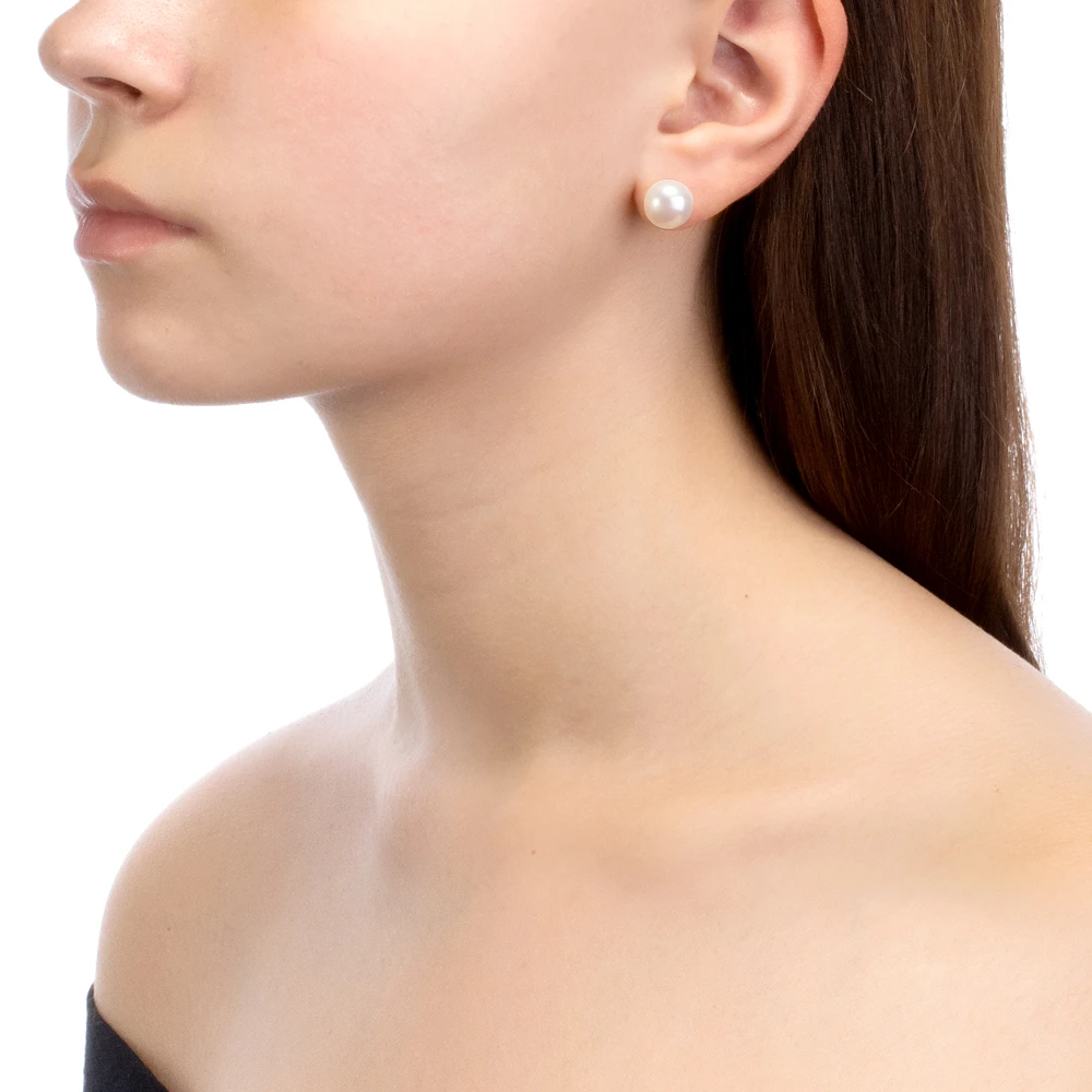 Пусеты из серебра 925 пробы с белыми речными жемчужинами 9,5-10 мм, (586)