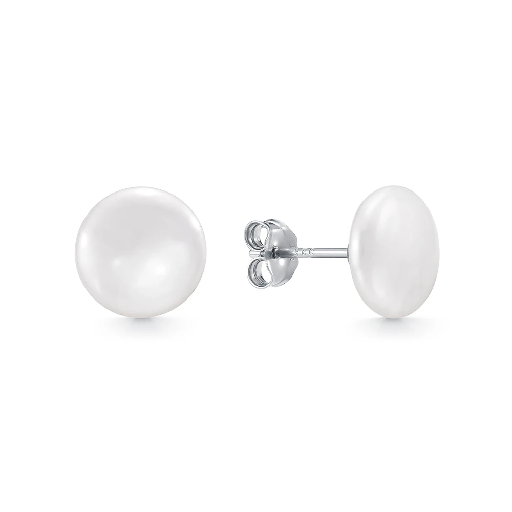 Пусеты из серебра 925 пробы с белыми жемчужинами "Барокко" 10,5-11 мм, (7344)
