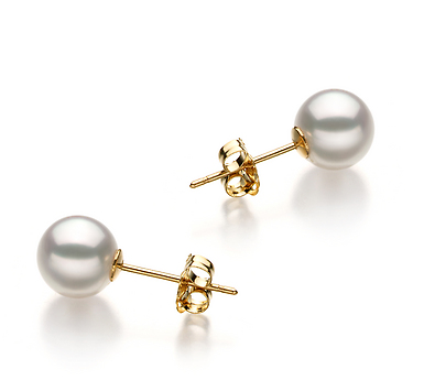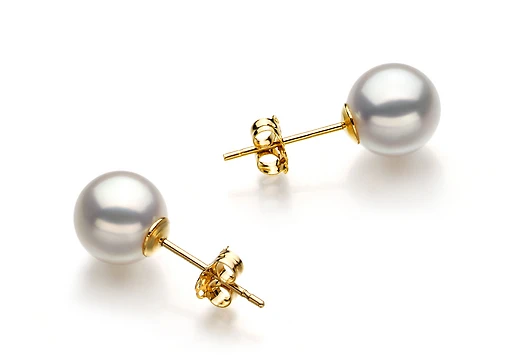 Изящные пусеты изготовлены из золота 585 пробы и украшены японскими морскими жемчужинами Акойя. Качество жемчужин на пусетах наивысшее, жемчужины имеют очень яркий перламутровый блеск с минимальным количеством природных изъянов, форма жемчужин идеальная круглая.