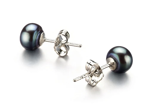 В наличии есть пусеты с жемчужинами различных оттенков черного цвета.