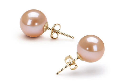 В наличии есть пусеты с жемчужинами различных оттенков розового цвета.